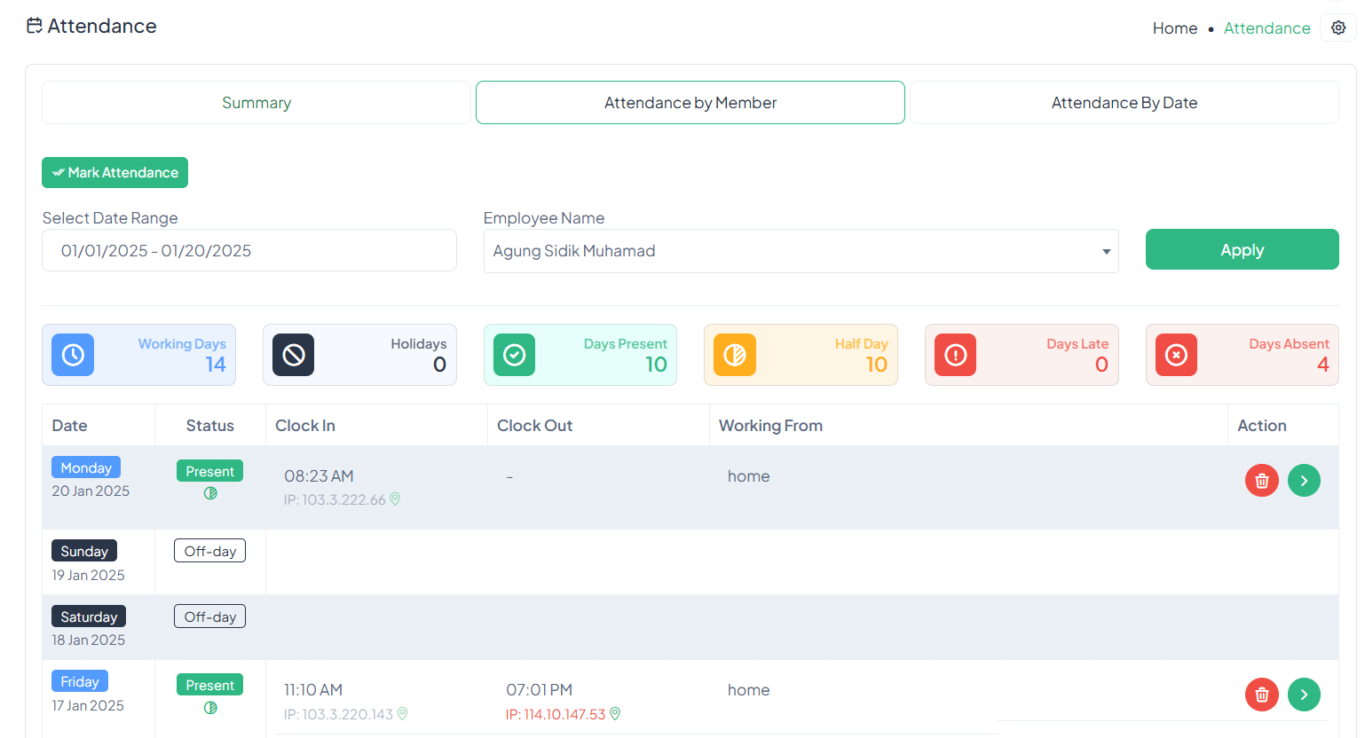 How to access employee's attendance record