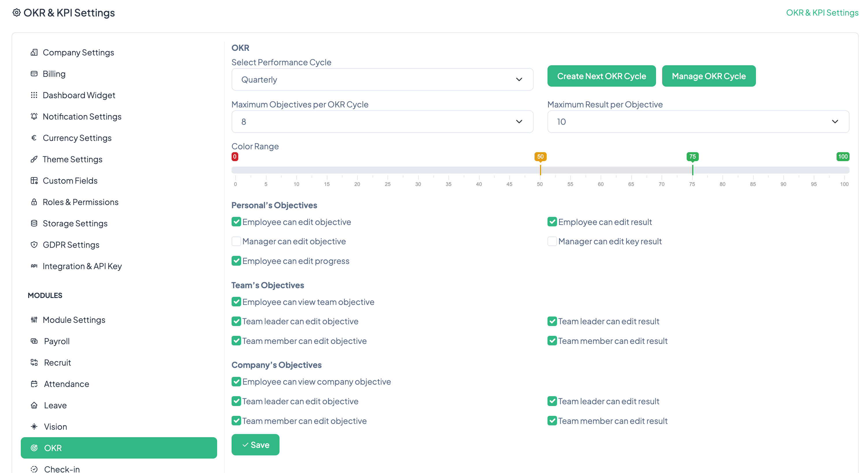 How to update settings for OKR