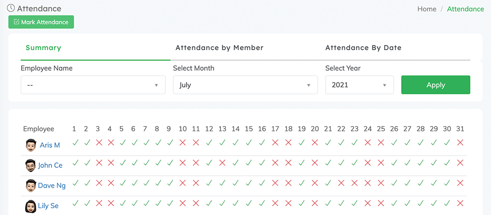 Attendance can be measured by clock-in & clock-out functions. How much time do your employees spend on their tasks and projects when working in the office or home.